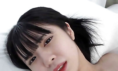 Sweet Japanese girl gets hair vag cumfilled
