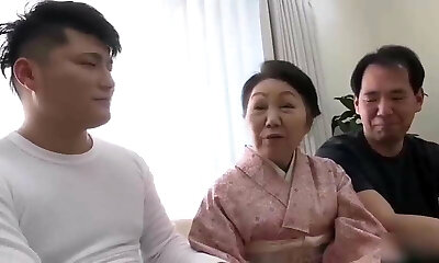 Japanese 70 Year Old Granny Gets Fucked By 2 Young Men