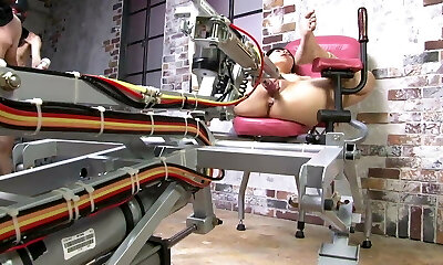 Fucking her with a sex machine and subs go bananas