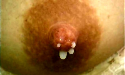 Closeup handsfree dripping Milkynipples, by Spyro1958