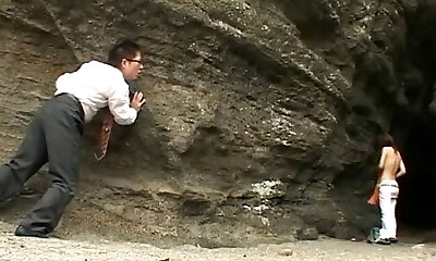 Cruel guy face fucks cute Japanese girl in the middle of the forest