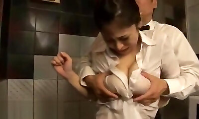 Japanese huge boobs maid romped hard at work