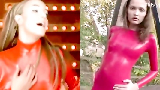 Crimson Latex Catsuit Fetish PMV Britney Rods Oops I Did It Again