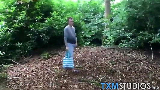 Unexperienced goes to the woods to rail a fuck stick while tugging off