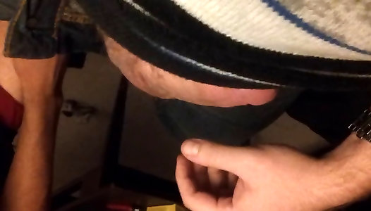 Bev gives a hand job in her milky shirt, part 1
