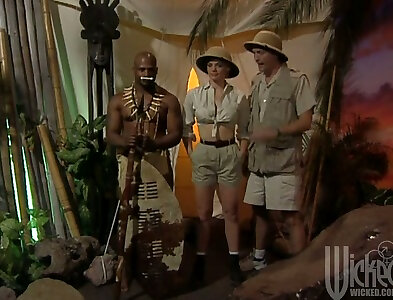 Two immense ebony ladies and a xxl rod dude shagging in a 3 way