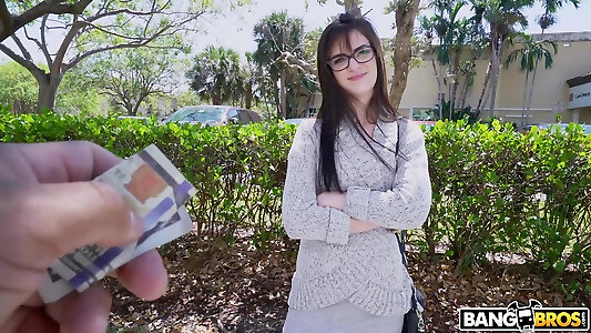 Bashful chick with glasses gets drilled nutsack deep in rear end - Piper June