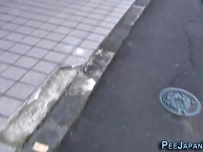 Black-haired showcasing and demonstrating upskirt cunny on street