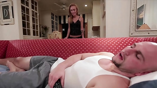 Killer blonde sweet girl rubbed and lures for romantic fuck-a-thon on the couch