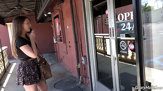 Sweet white brown-haired nymph in the gloryhole feeds and bangs on meaty ebony stiffys