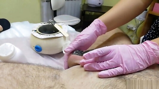 Waxing of fuck-stick with happy completing