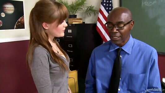 un instituteur ébène baise sa collégienne dans une salle de classe