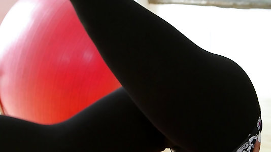 светловолосая милашка с блестящей задницей демонстрирует свою гибкость