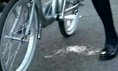 Cute sexy Asian slut wife with hot pantyhose teasing the big shaft to fuck her pussy