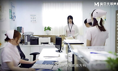 MD0180 - Creepy Doctor Convinces Two Young Asian Medicals Intern to Bang to Get Ahead - Threesome Sex