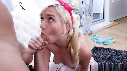 漂亮苗条的泡沫屁股保姆同意性取悦她的新老板赚取一些额外的钱